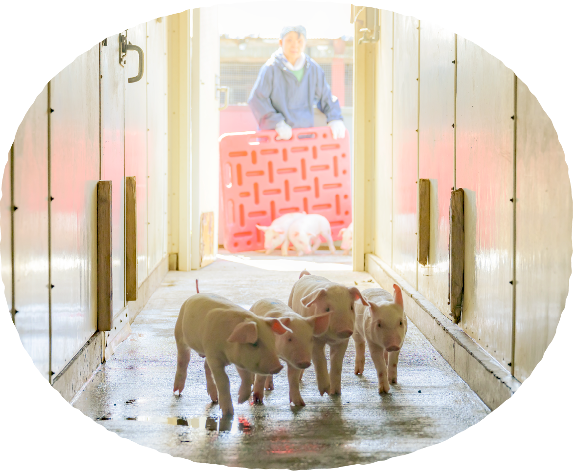 そんな気持ちで、こだわり抜いた「まる豚」を育てています。