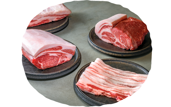 それこそがほそやの「まる豚」の特徴です。特に脂身は、あっさりとしていながらも甘みが感じられる。ジューシーなのに、決して重くない。とんかつ、しゃぶしゃぶ、焼き肉...様々な料理と相性抜群です。